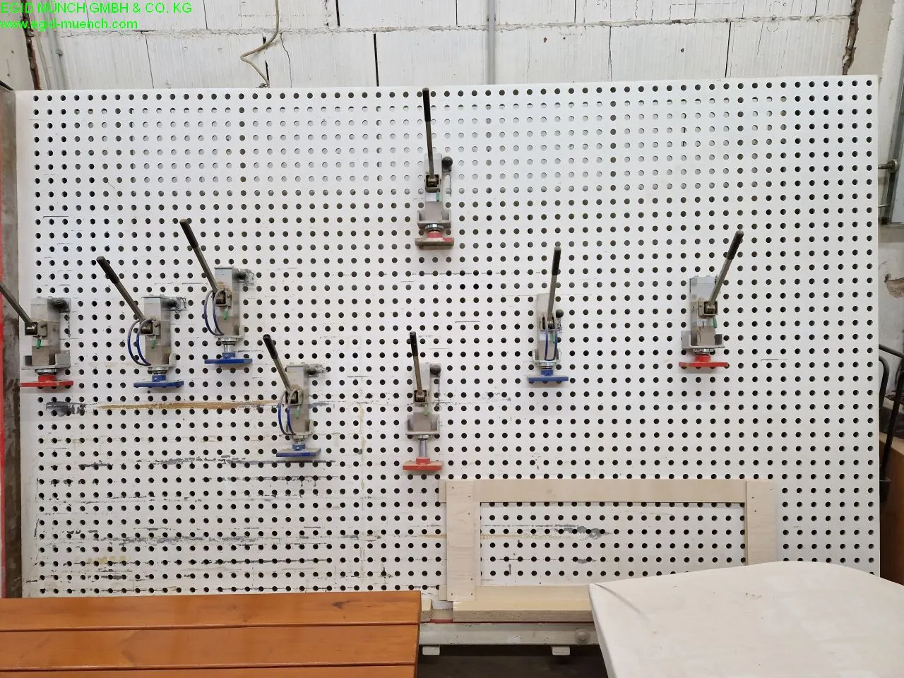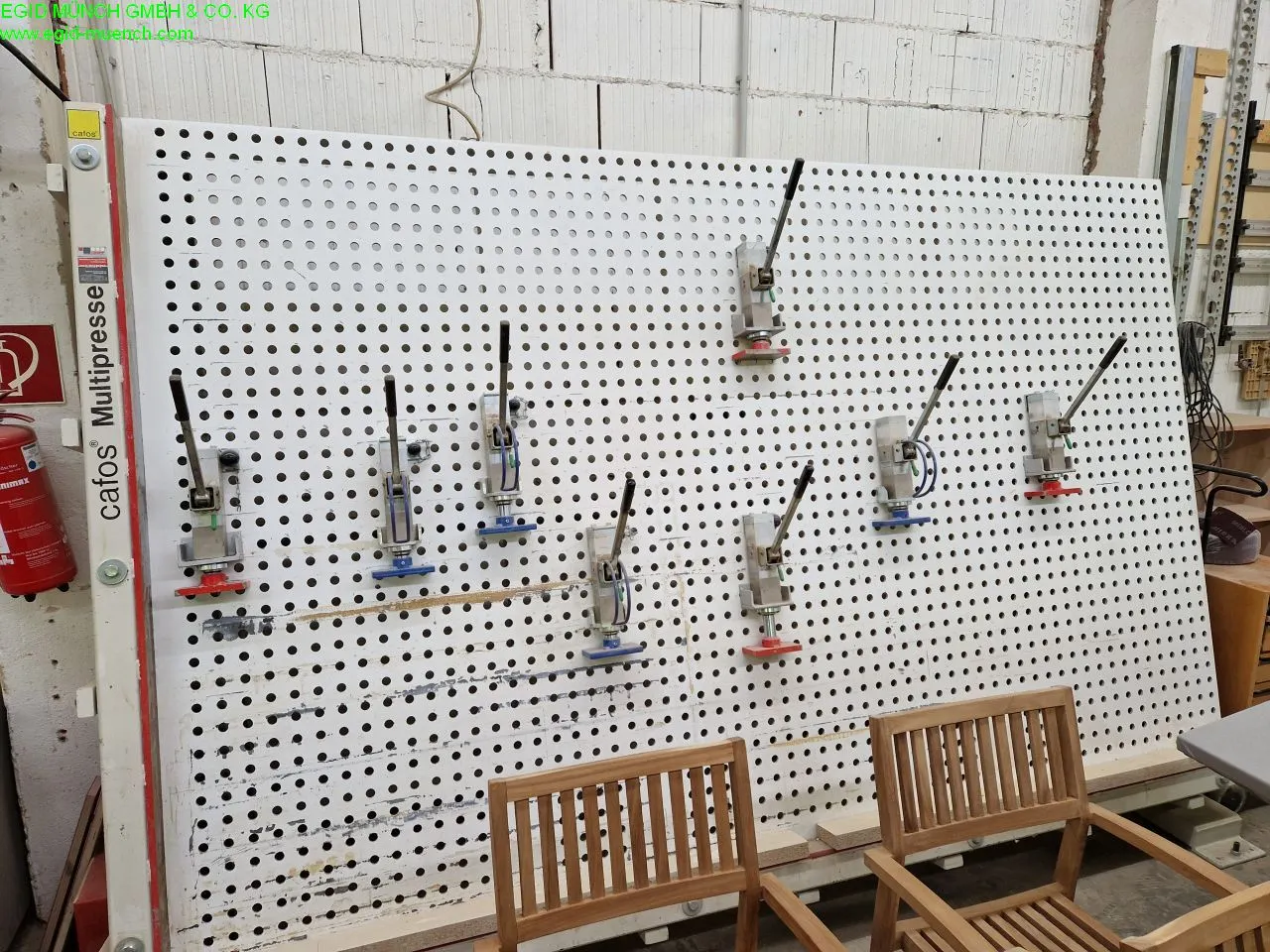 Die CAFOS AGILO Verleimpresse (Baujahr 2011) ist eine leistungsstarke und robuste Handhydraulikpresse, die speziell für höchste Präzision und Belastbarkeit in der professionellen Holzbearbeitung entwickelt wurde. Mit ihrer massiven, lasergeschnittenen 50-mm-Lochraster-Arbeitsplatte garantiert sie absolute Planheit und exakte Arbeitsergebnisse.